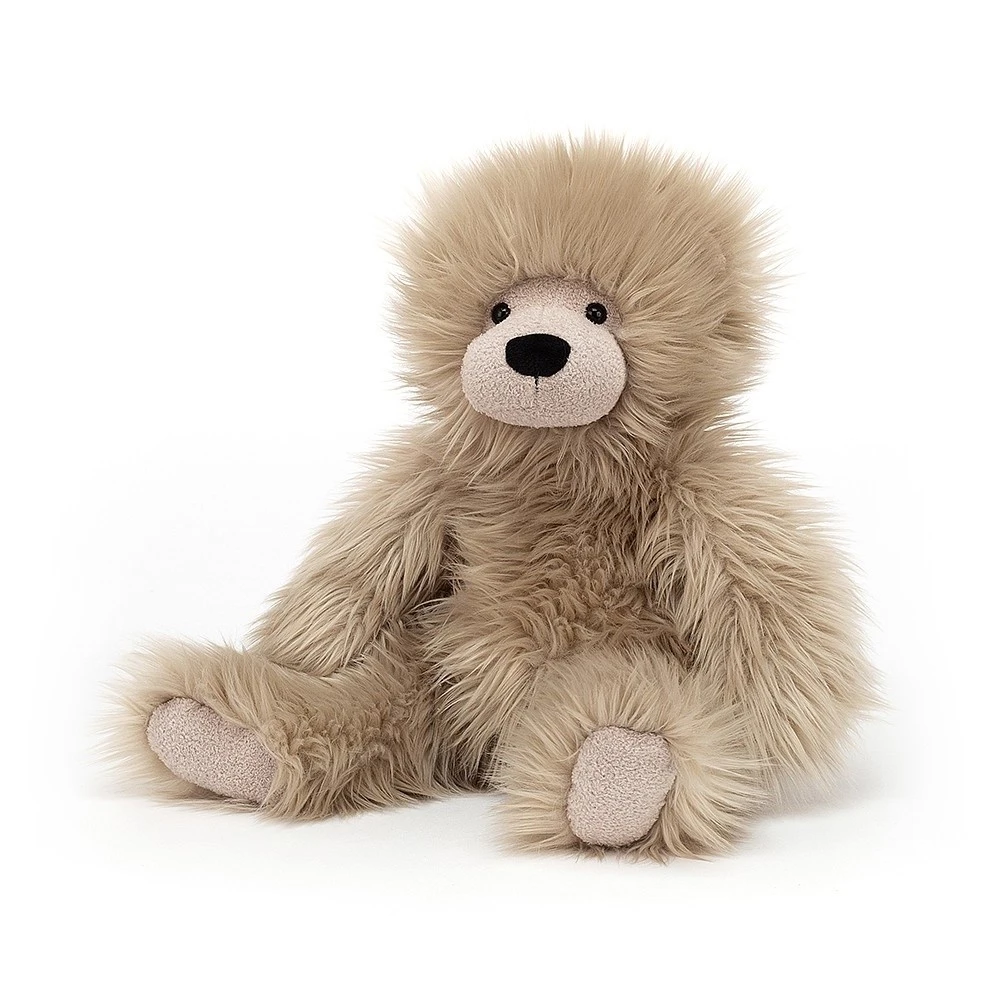 Herbie bear van Jellycat is een een beer met een zijdezachte langharige vacht. Met zijn grote zwart neus en grote poten is dit een echte knuffelbeer.